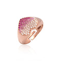 A fluid curve of pavé stones, shifting from blush tones to radiant light. Bold in form and rich in feeling, this rose gold-plated ring is an expression of warmth, confidence, and modern romance.