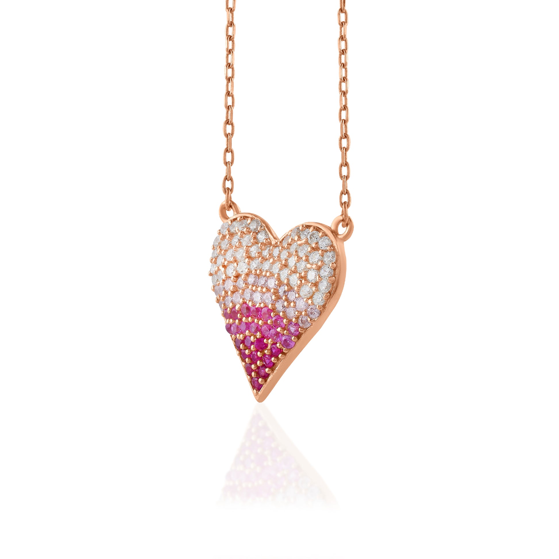 Thoughtfully designed to celebrate love in all its forms, the [Name] radiates subtle brilliance. The pavé heart transitions from bright white to rosy pink, symbolising warmth, affection, and connection. Mounted on a fine rose gold-plated silver chain, this piece is designed to sit close to the heart — making it perfect as a meaningful gift, or a personal reminder of self-love.