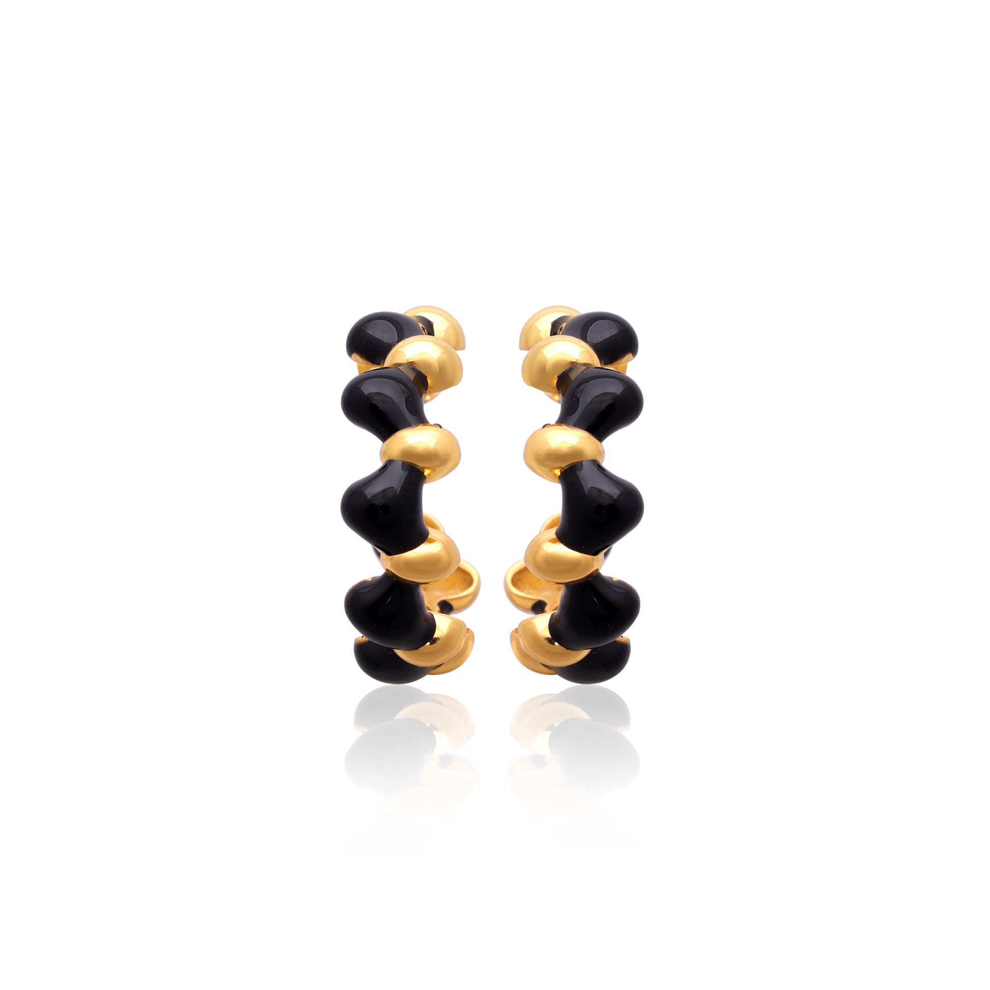 Defined by fluid curves and rich contrast, the Moro Hoops feature sculptural forms in deep espresso tones, accented with warm gold-plated silver. The rhythmic design wraps the ear with movement and depth, creating a statement that feels intentional and expressive. Bold yet refined, this pair is made for those who gravitate towards individuality over convention.
