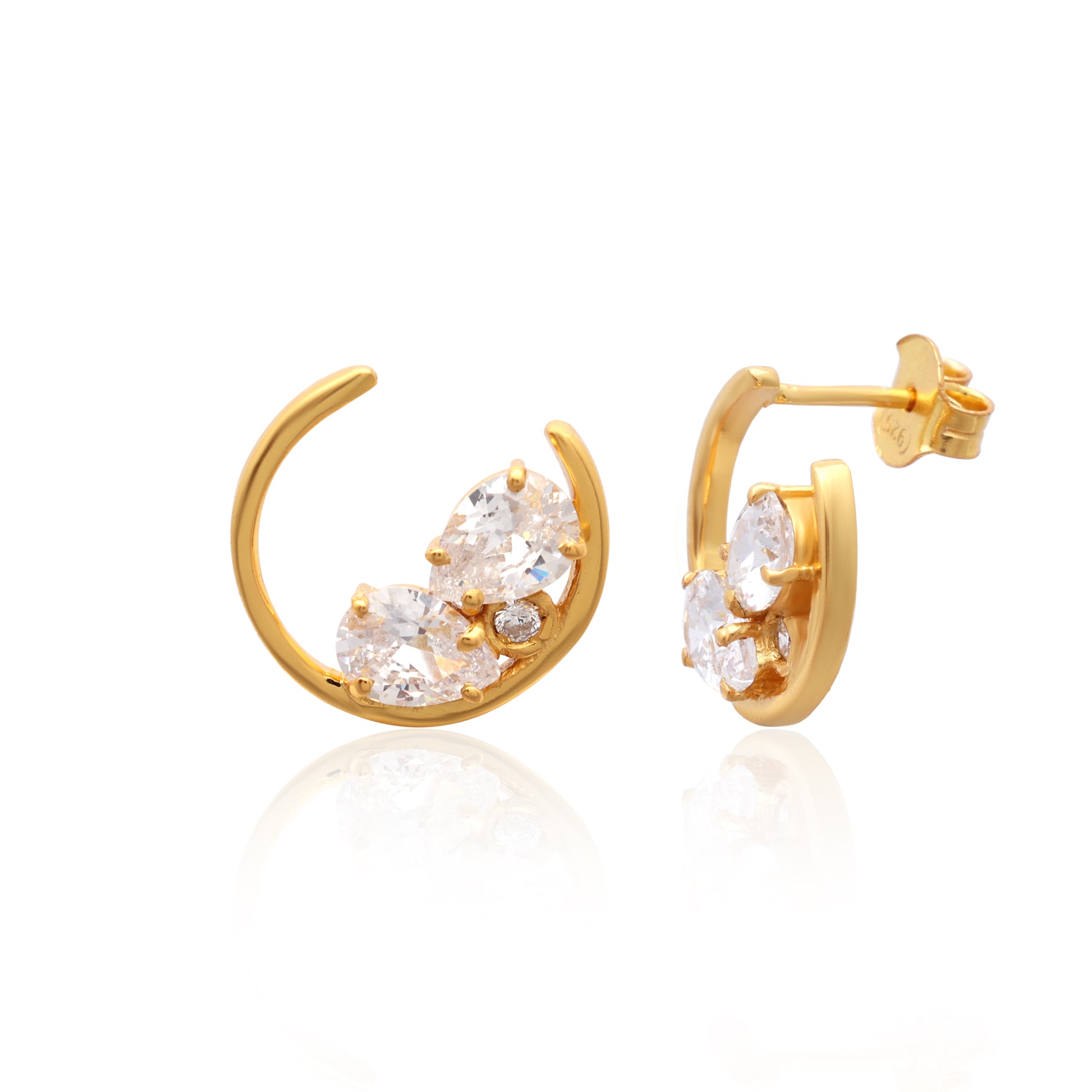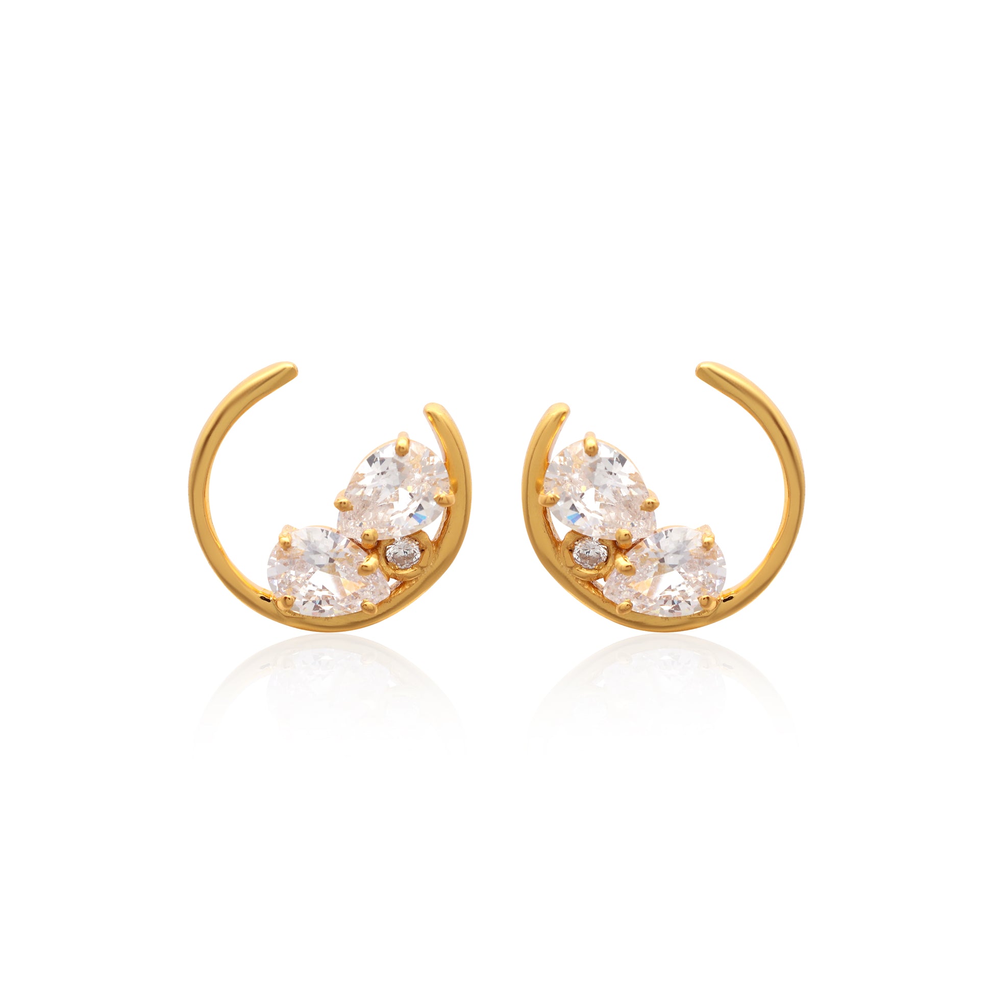 The open gold-plated arc creates a striking contrast between structure and light, allowing the pear-shaped stones to glow with understated brilliance. These NURA Studs are a refined statement, designed to be felt — not announced.