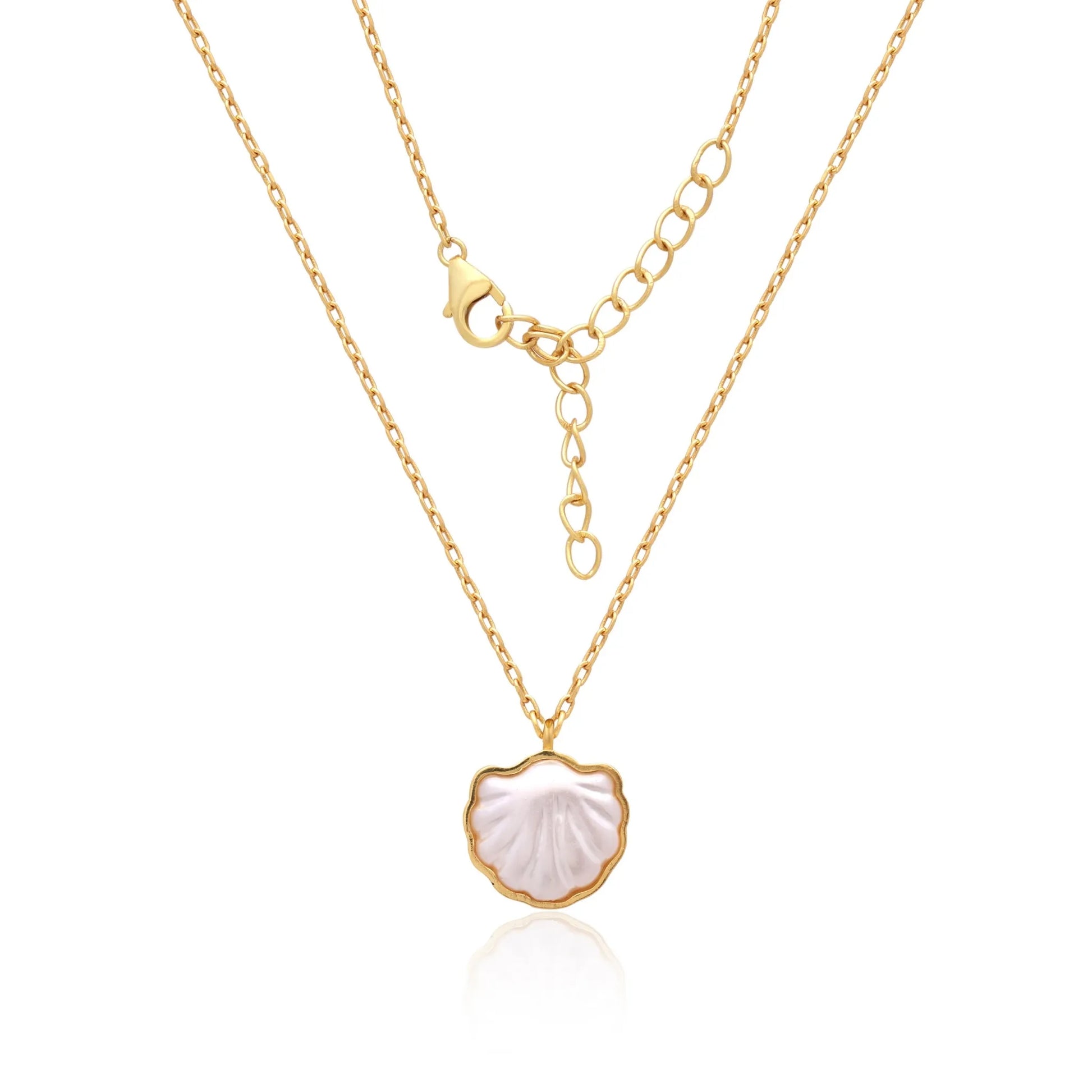 Inspired by the gentle rhythm of the sea, the Serena Necklace features a delicately sculpted seashell motif with a soft pearlescent finish, framed in warm gold-plated silver. Its organic form and subtle sheen bring calm elegance to the neckline. A timeless piece that reflects serenity, femininity, and natural beauty.