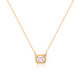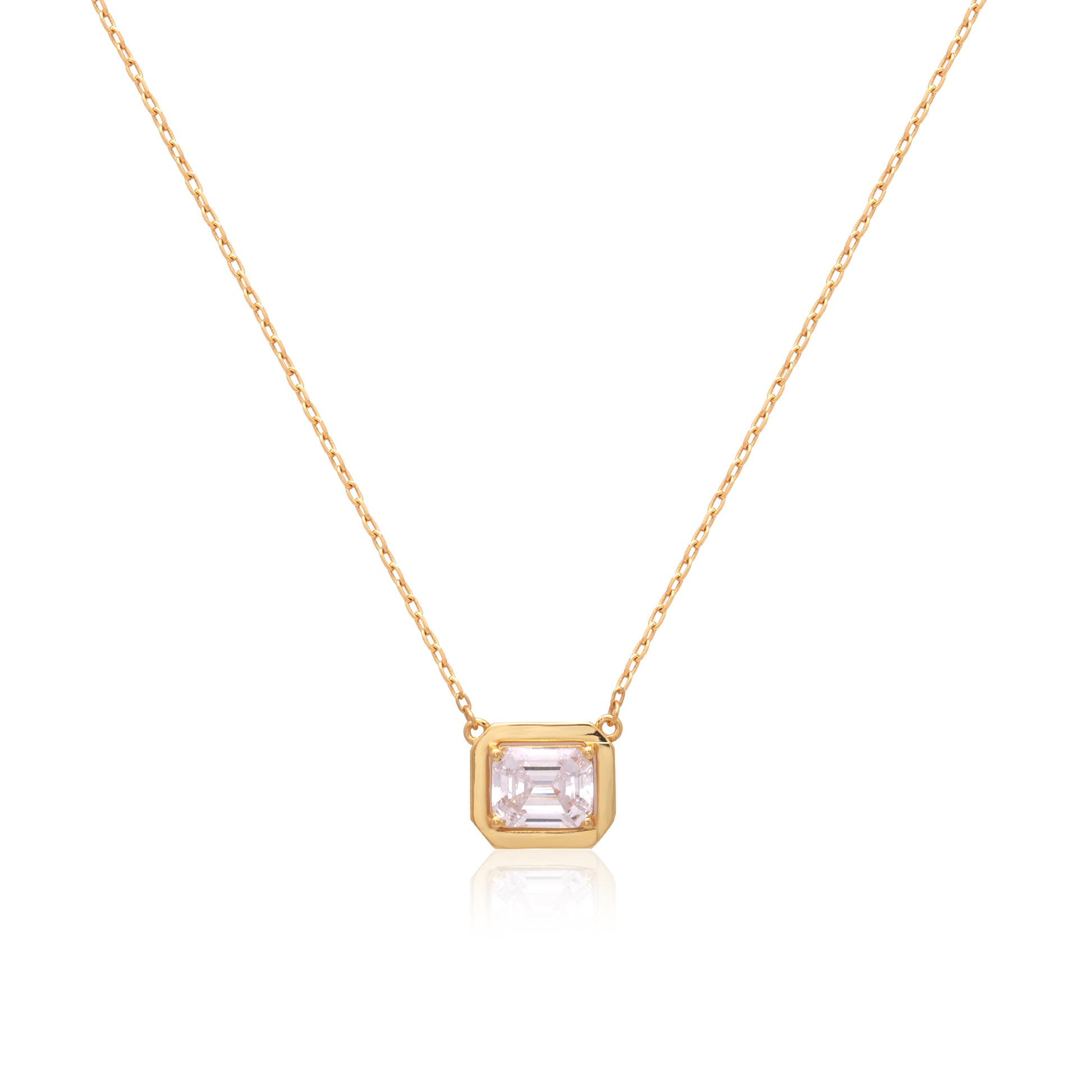 Defined by simplicity and timeless elegance, the Solitaire Lumi Necklace features a single clear stone set in a clean, geometric frame. The soft brilliance of the stone pairs effortlessly with the warm gold-plated silver finish, creating a refined yet luminous look. Designed to sit gracefully at the neckline, this piece is perfect for everyday elegance or understated evening styling.